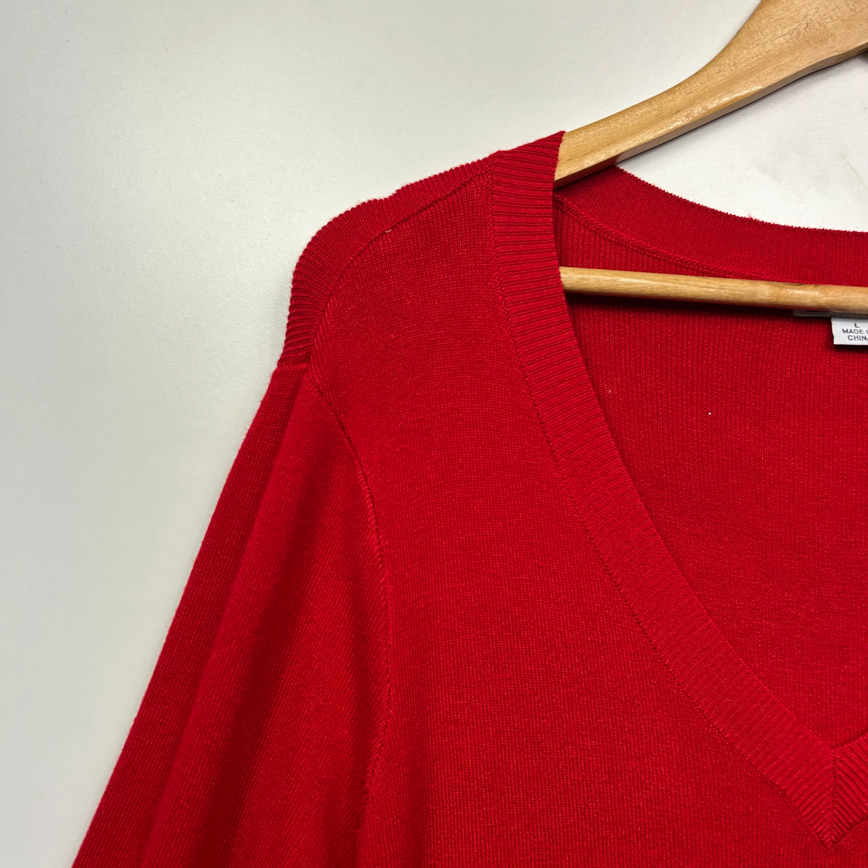 Rockmans Top Size 14 Larger Red Long Sleeve Asymmetric Hem
