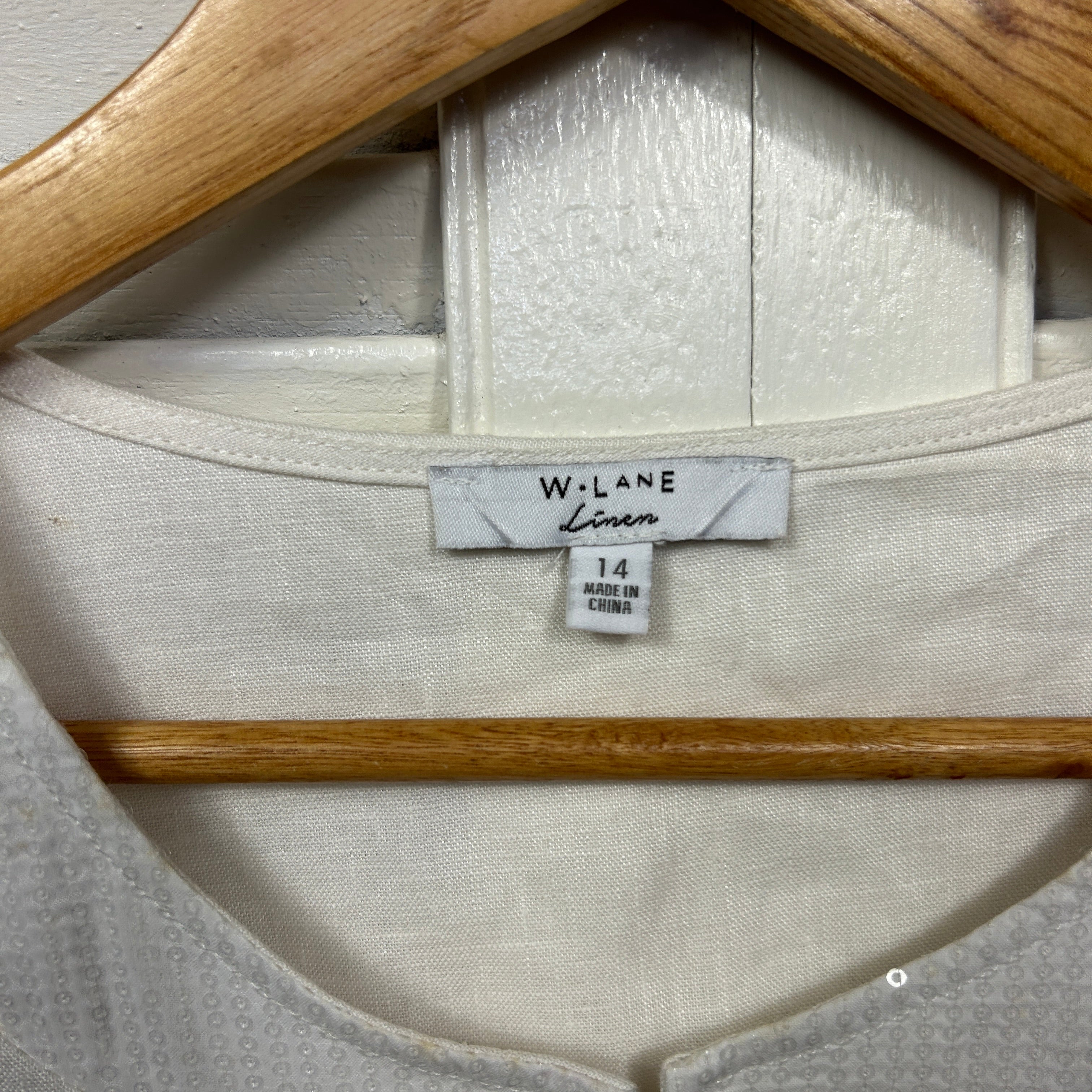 W Lane Linen Top Size 14 White Sequins Long Sleeve
