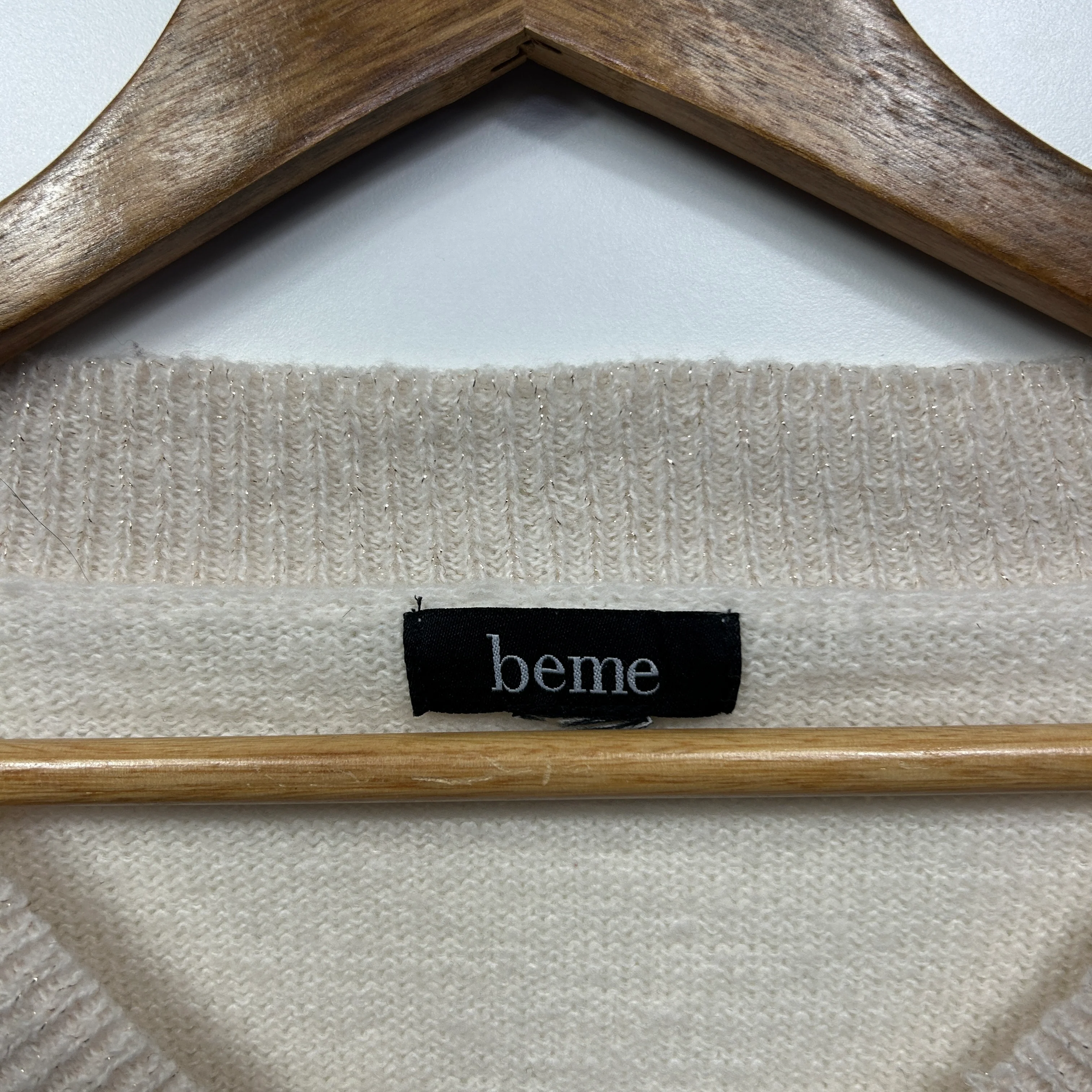 beme Jumper Size 16 18 Cream Stars Sequins Long Sleeve