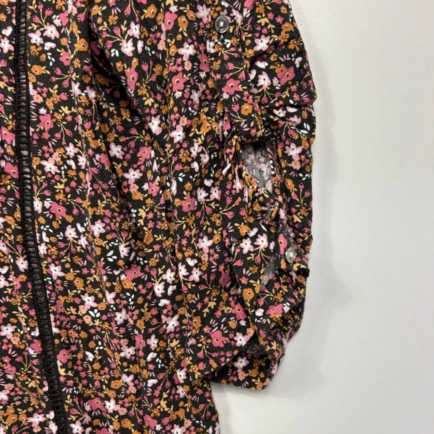-70%Beme Tunic Tops Size 14 Plus Floral Roll Tab Sleeve Crochet Trim—