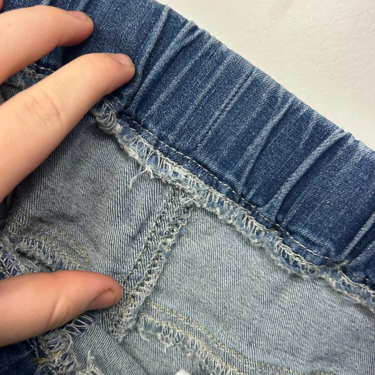 Emery Rose Blue Denim Skirt Size 16 Raw Hem Elastic Waist Short Length