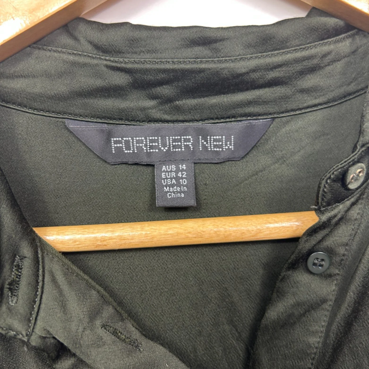 Forever New Olive Green Button Up Top Shirt Size 14 Viscose