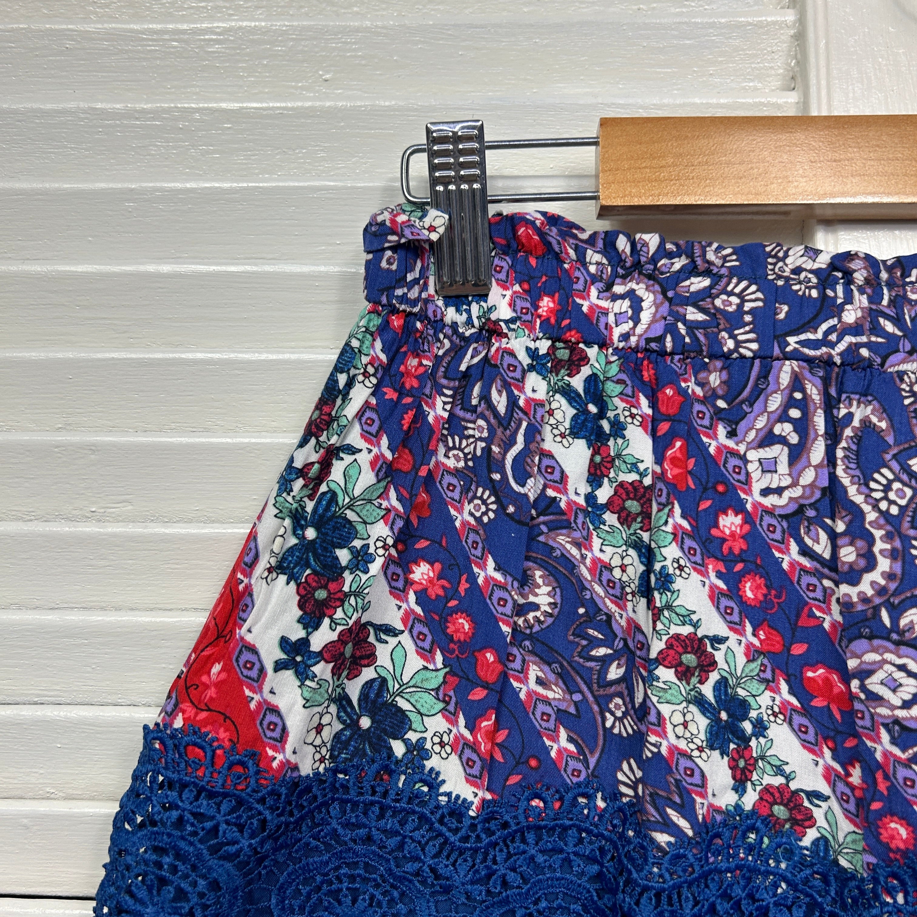 Jaase Mini Skirt Size 14 Large Multicoloured Floral Crochet Trim