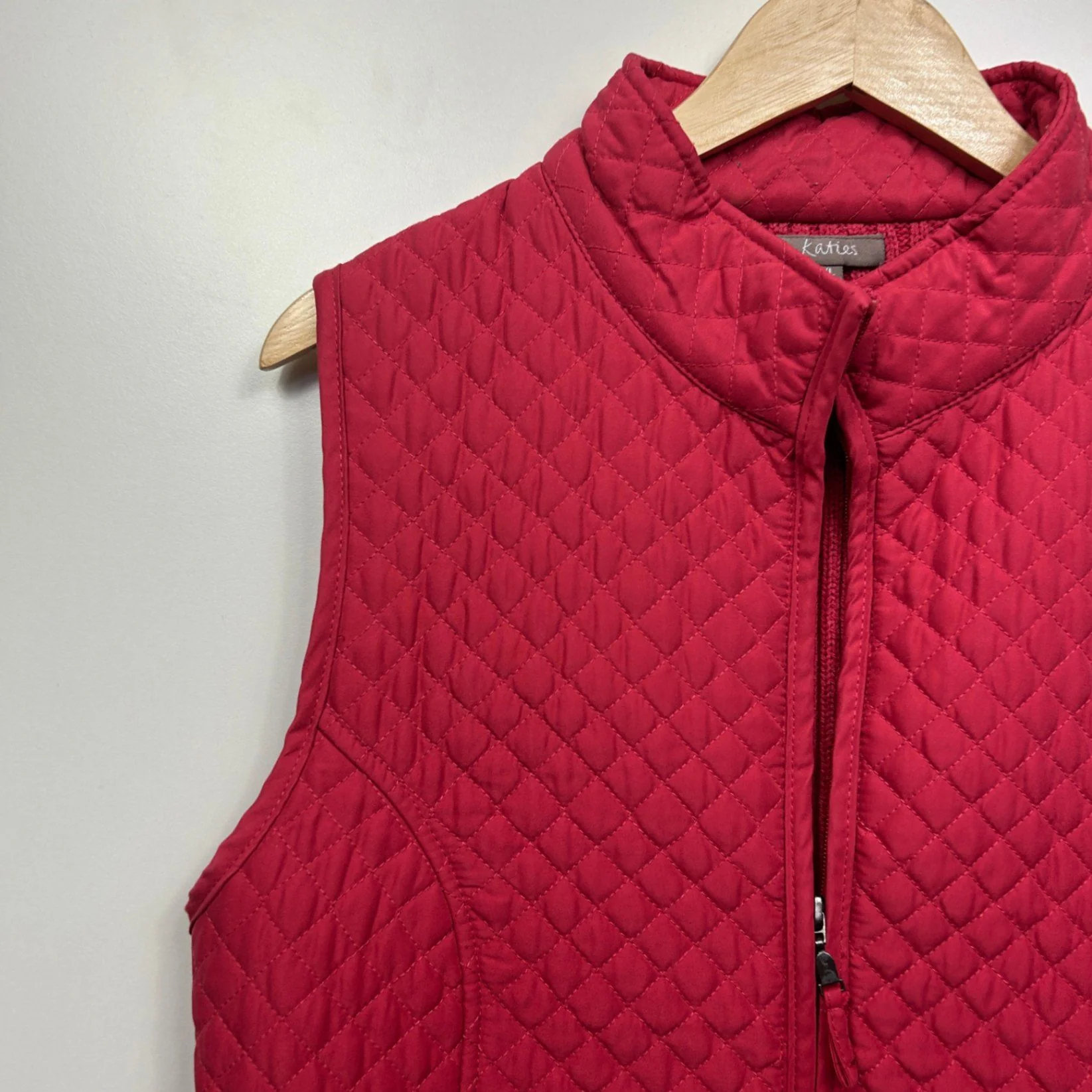 Katies Quilted Vest Size XL 16 Red Sleeveless Jacket Lightweight Full Zip Up Pocket