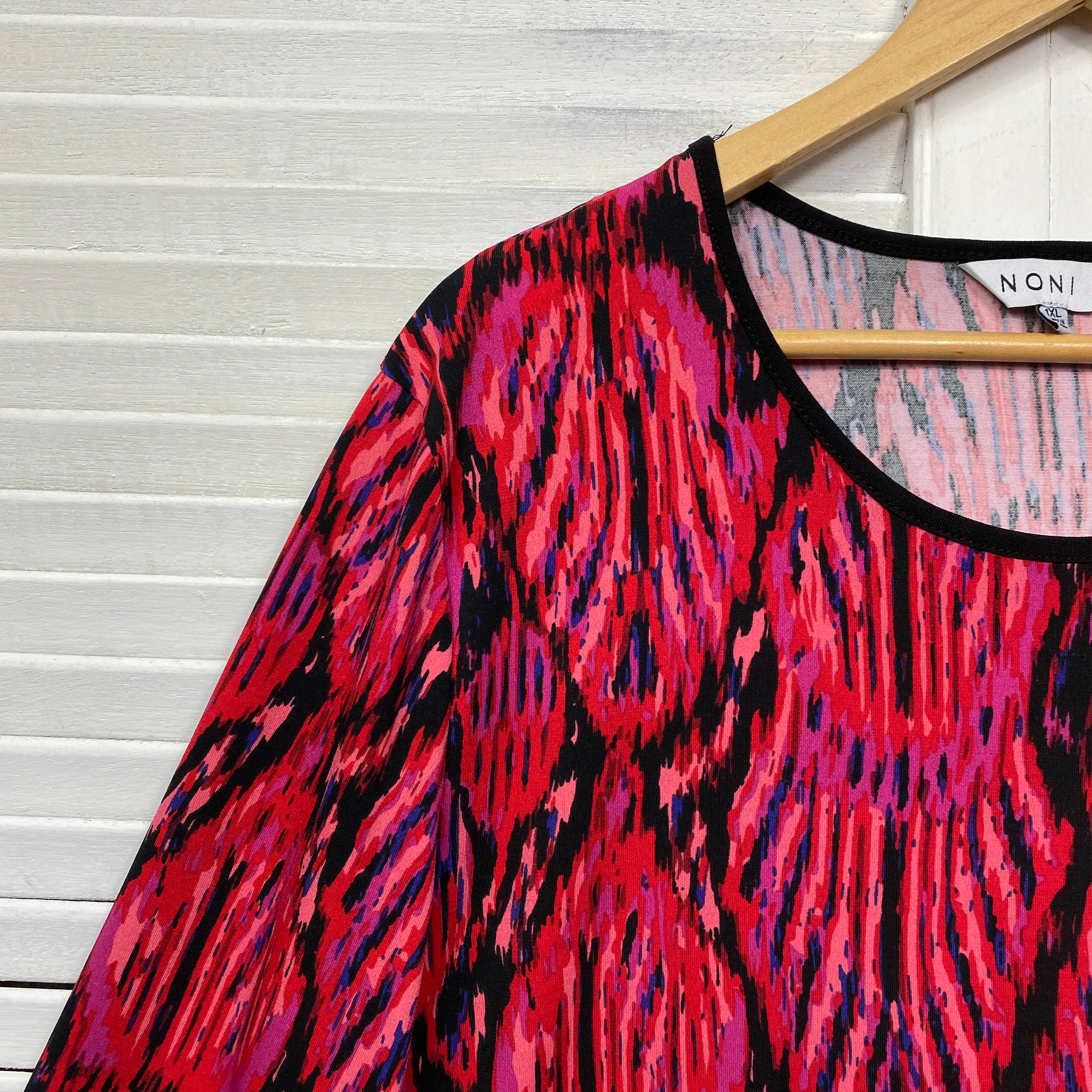 Noni B Top Size 1XL 16 18 Pink Black Tunic Long Sleeve