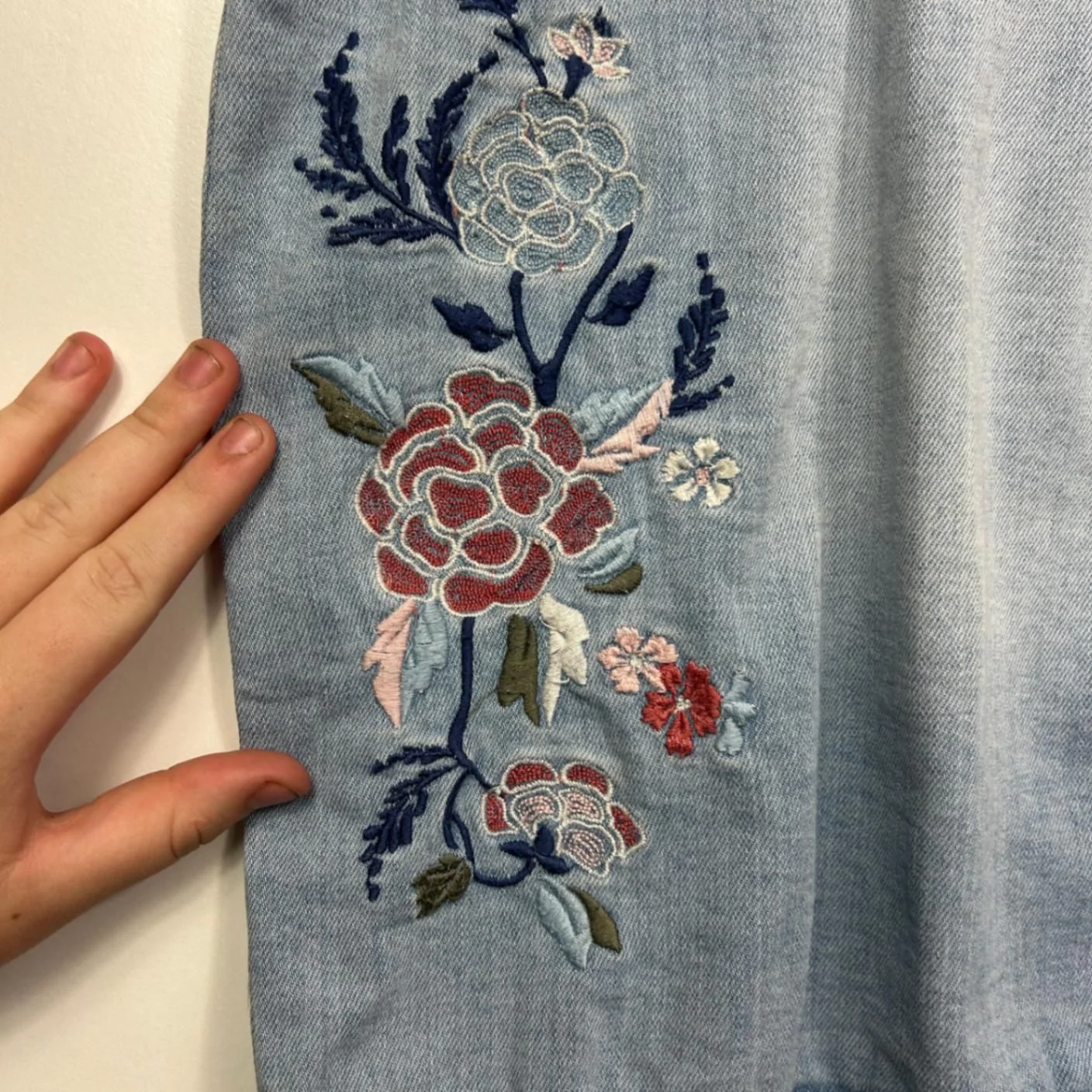Now Womens Cotton Blend Pockets Denim Mini Skirt Size 16 Floral Embroidered