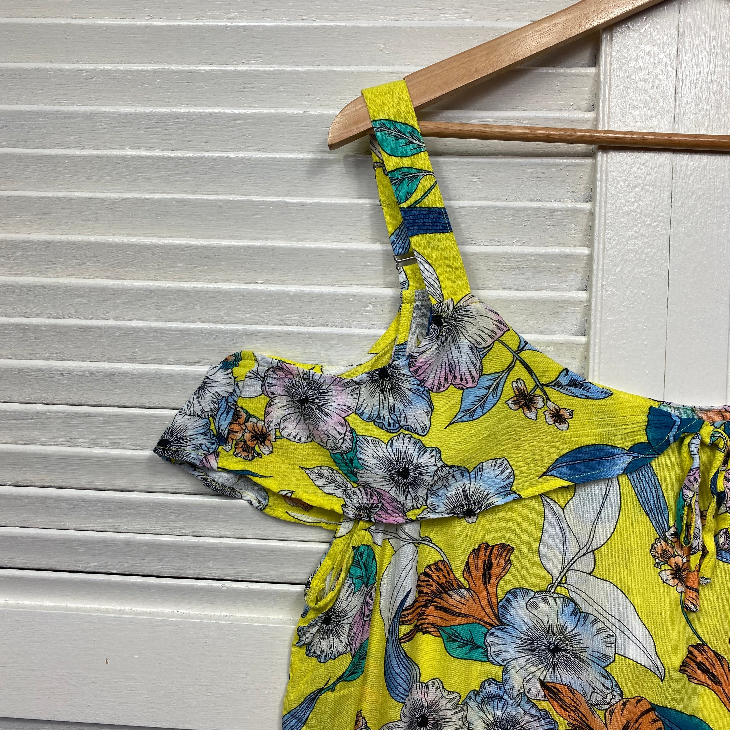 Rockmans Top Size 18 Yellow Floral Cold Shoulder Sleeve New