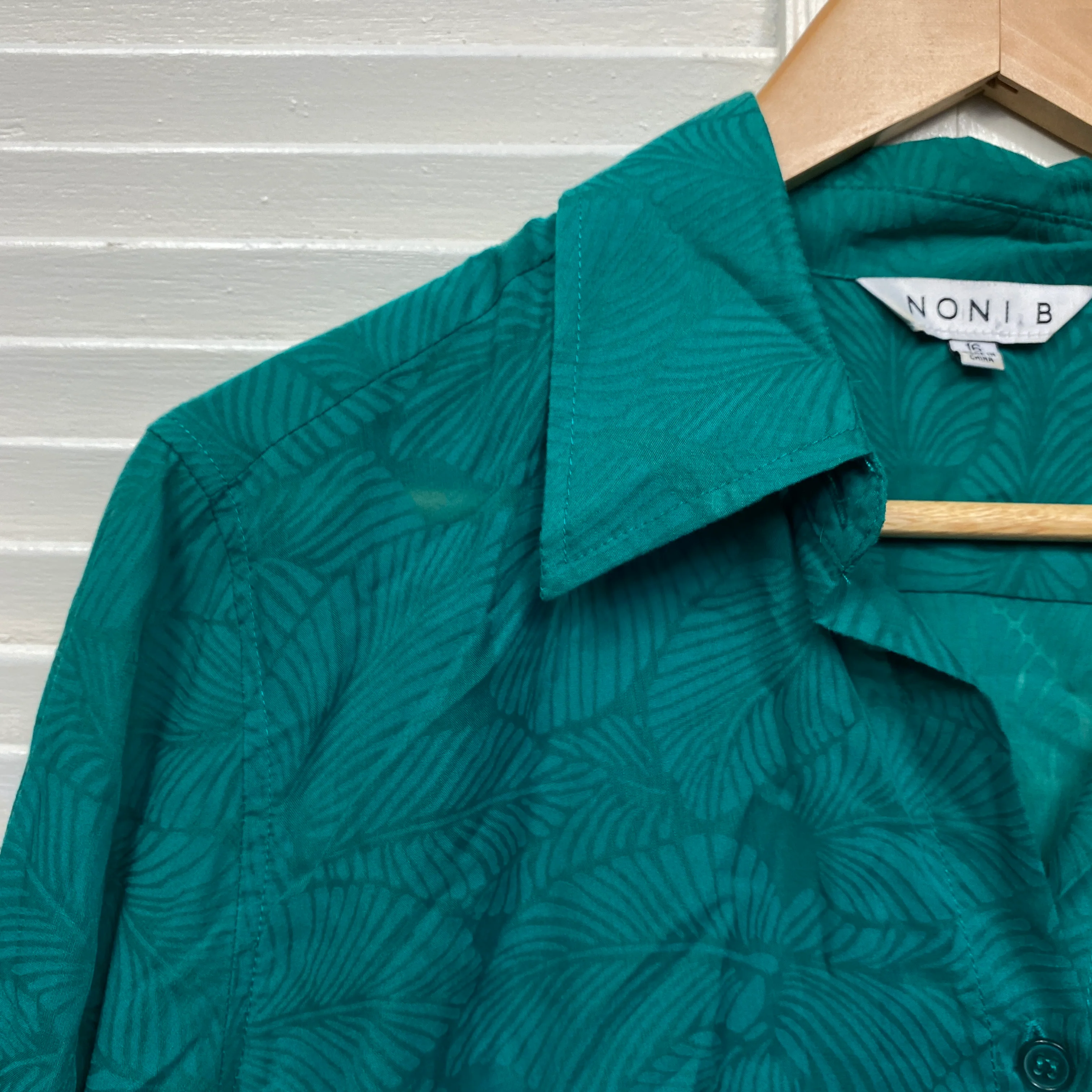 Noni B Top Size 16 Green Button Up Roll Tab Sleeve Sheer