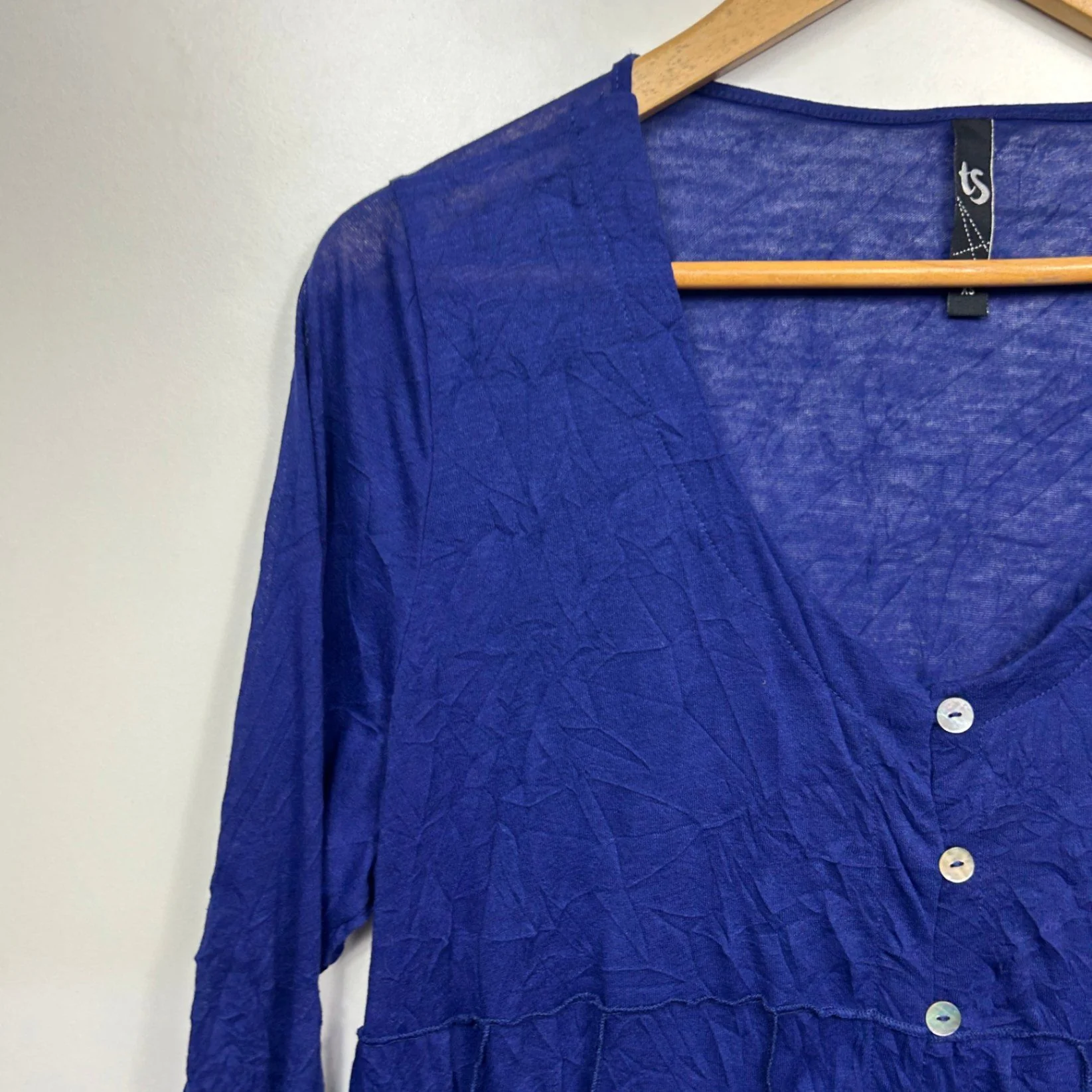 Taking Shape Tunic Top Size 14 Plus XS Purple Blue Pockets Ruched Sleeve